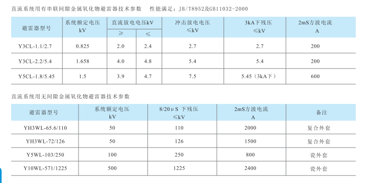 直流系统用金属氧化物避雷器
